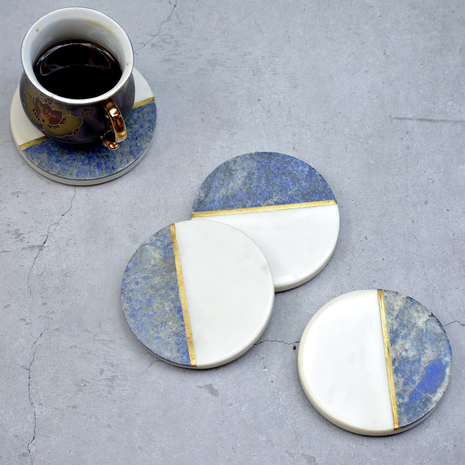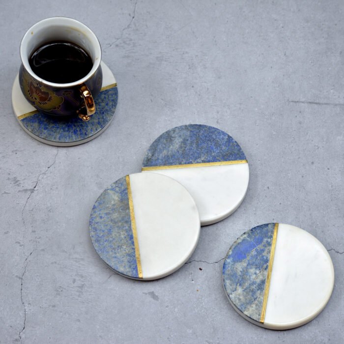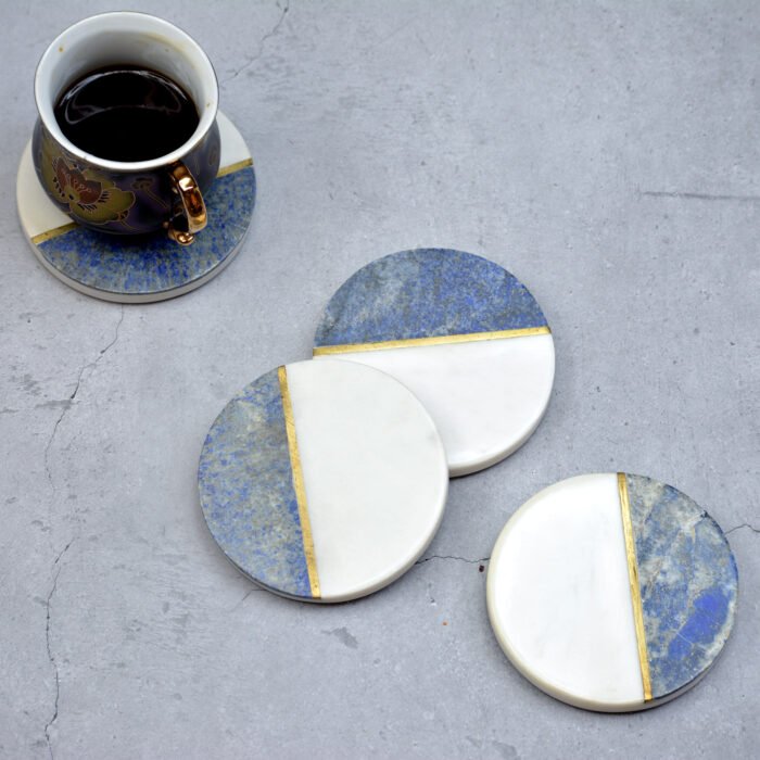 Home » Shop » Blue & White Brass Inlay Coasters (Set of 4)