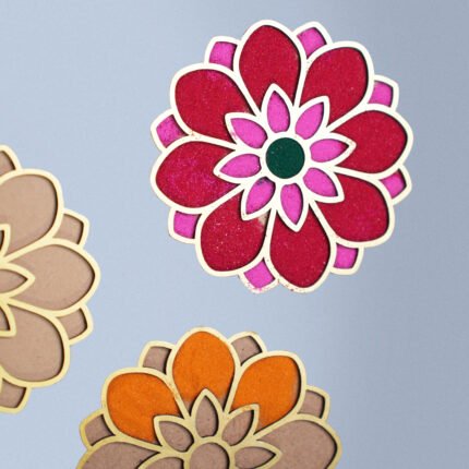 Premium Floral DIY Diwali Rangoli Kit for festive season, Diwali, Weddings, House Warming – 3 Elegant Stencils & 4 Festive Colors