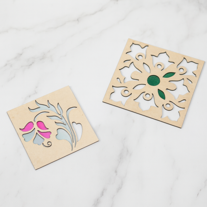 DIY Rangoli Floral Wall Pasting Kit – 2 Intricate Floral Stencils with 3 Colors, for festive season, Diwali and Weddings
