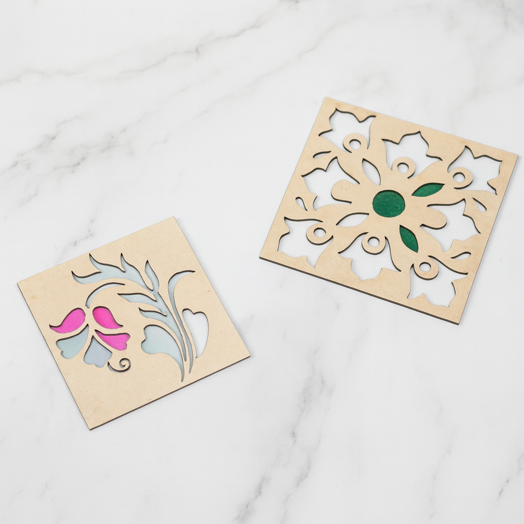 Includes: 2 Reusable artisanal stencils + 3 Premium rangoli colors