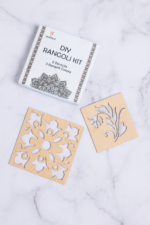 Home » Shop » DIY Floral Rangoli Kit for festive season, Diwali, Weddings, House Warming – 2 Stencils & 3 Vibrant Colors