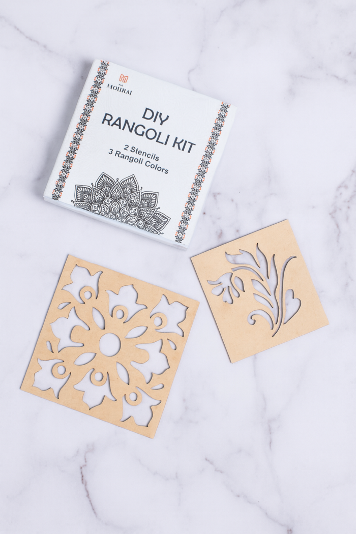 DIY Floral Rangoli Kit for festive season, Diwali, Weddings, House Warming – 2 Stencils & 3 Vibrant Colors