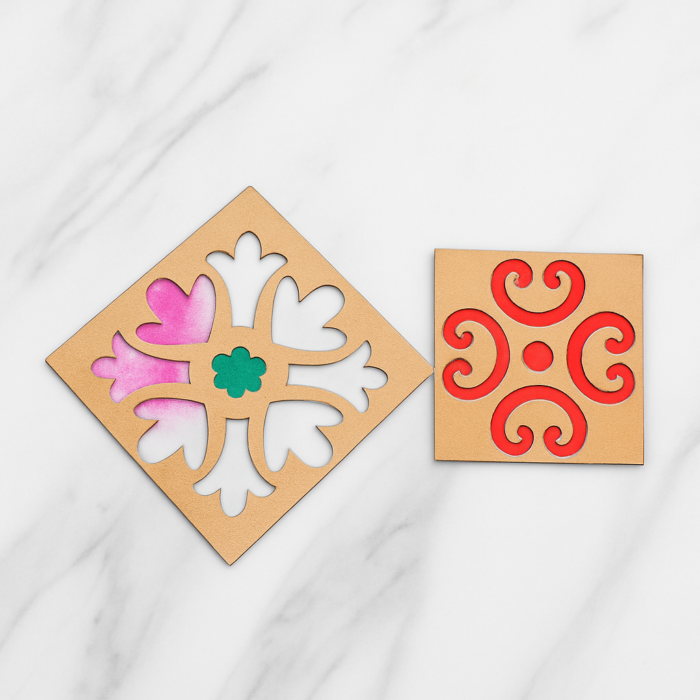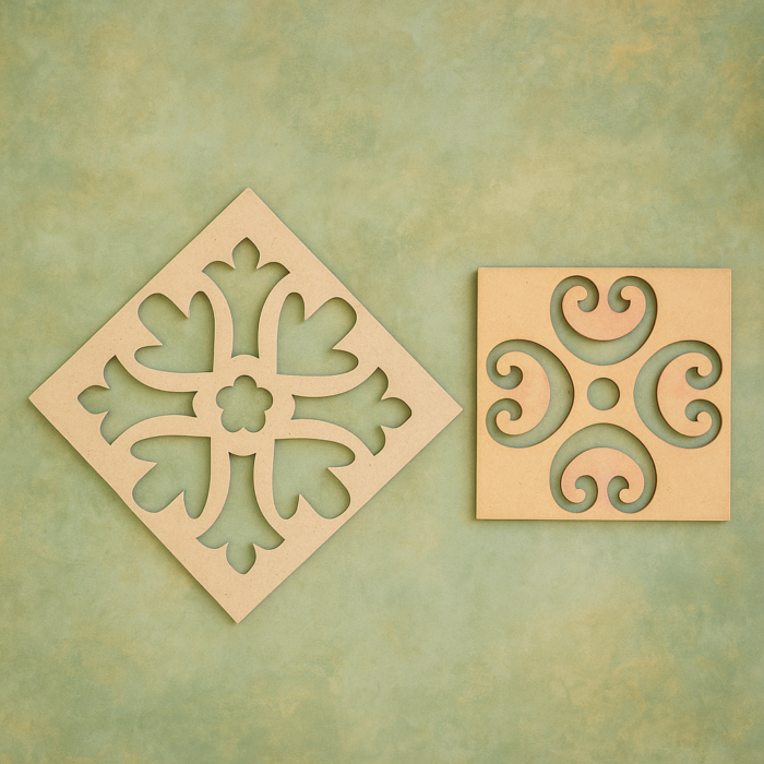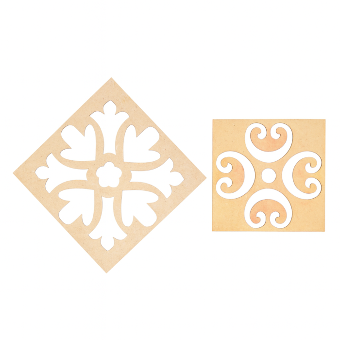 DIY Rangoli Square Wall Pasting Kit – 2 Intricate Square Stencils with 3 Colors, for festive season, Diwali and Weddings