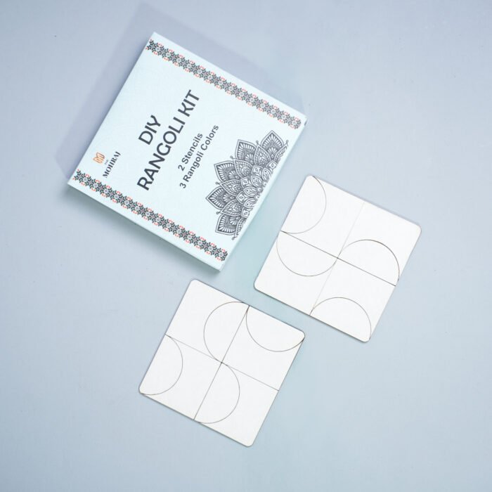 Add elegance to your festive décor with our Premium Pasting Rangoli Kit, a modern twist on the traditional rangoli. Designed with 2 intricately crafted floral stencils, each comes with a ready-to-use adhesive base, with 3 bright rangoli Colors. Perfect for Diwali, weddings, and festive occasions, this reusable kit saves time while keeping the charm of rangoli alive.