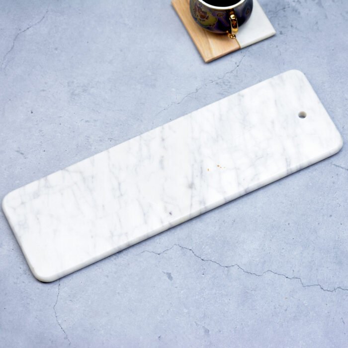 Meticulously crafted with elegance, our plain marble platter sets the stage for a luxurious dining experience. complete with a set of four sleek and durable stainless steel cheese serving tools, this ensemble ensures that every experience is a sophisticated affair.