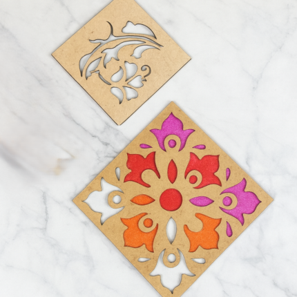 DIY Designer Rangoli Kit for festive season, Diwali, Weddings, House Warming – 2 Stencils & 3 Vibrant Colors